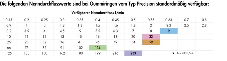 0,15 – 233 L/min je nach Durchflussbegrenzergröße..
