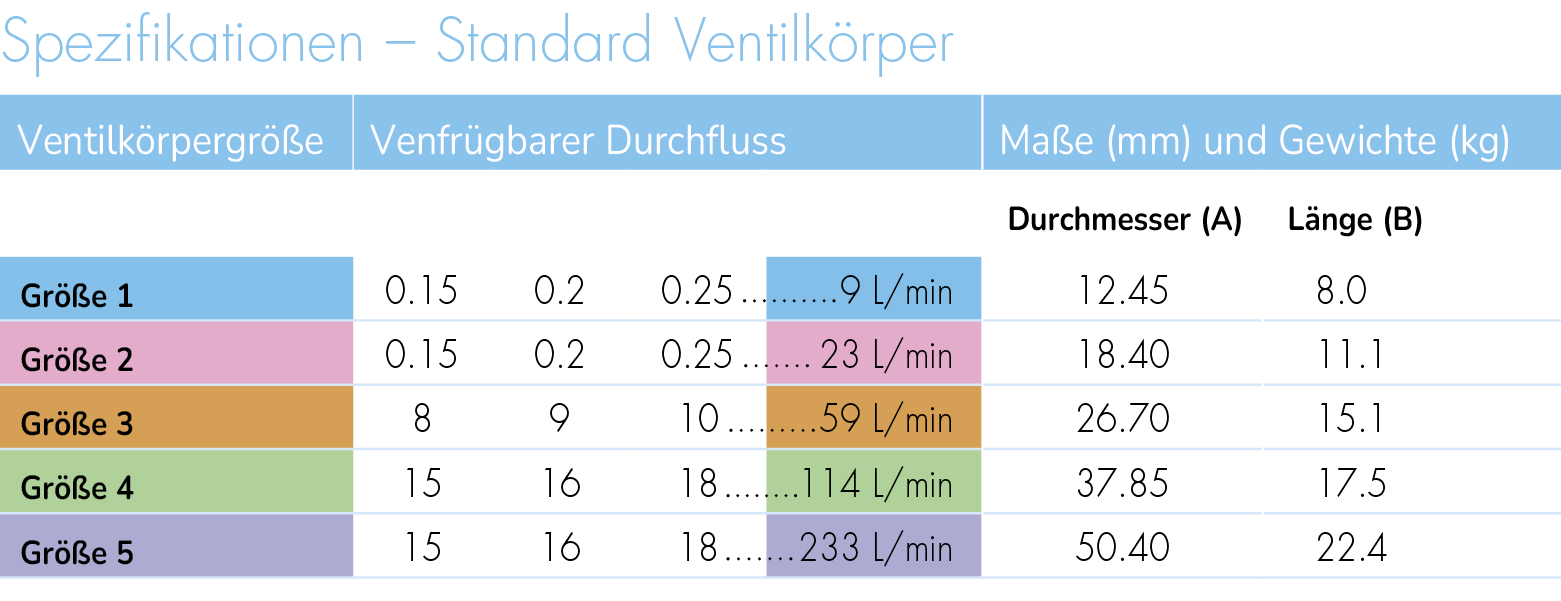 In unserem Spezifikationsleitfaden finden Sie detaillierte Anweisungen zur Auswahl der Durchflussrate, zur Materialkompatibilität, zu Abmessungen und Einbauempfehlungen.