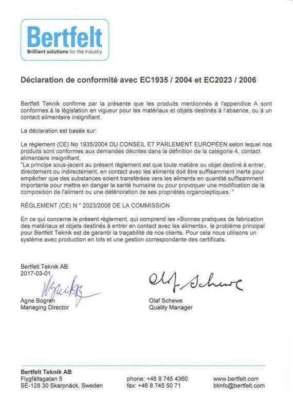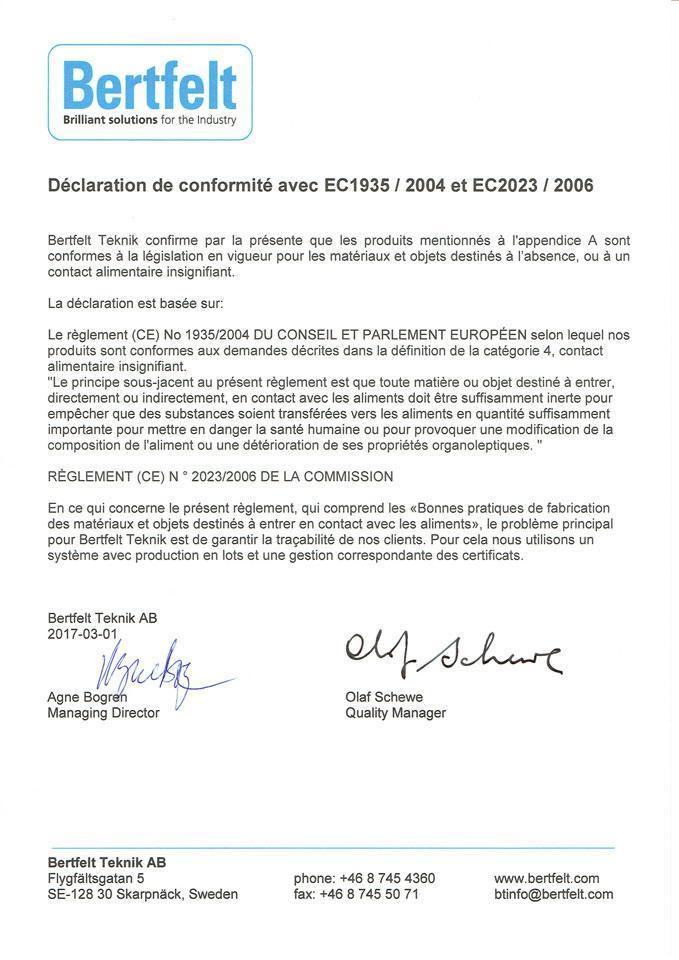 conformes aux normes EC1935/2004.