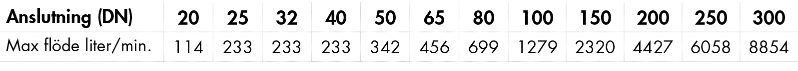 Vi erbjuder storlekar från DN20 till DN300 för att tillgodose olika systemkrav.